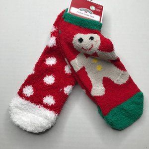 2 Pair Pack Holiday Time Women's Low Cut Socks Red/Green Gingerbread Man Shoe Size 4-10 New