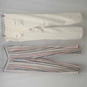 2 Pair Pants Lot Bundle Soft Loungewear White & Verticle Striped Straight Leg S
