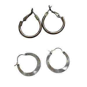 🌴 2 Pair Silver Tone Hoop Earrings Small Vintage Style Bundle