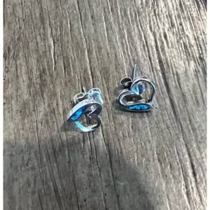 2 Pair Turquoise and Silver Heart Shape and Antique Swirl Post Earrings