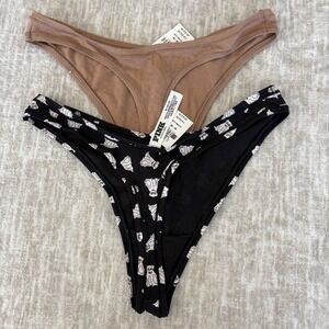 Elevate your everyday wardrobe with this set of 2 Victoria's Secret Pink thong/string panties in size medium. Crafted from a soft cotton blend, these panties promise comfort with a hint of playful charm, featuring a low-rise cut and a high-leg design for a flattering fit under any outfit. One pair is a mocha brown and one is black with the iconic Pink dog and PINK logo, adding a touch of Victoria's Secret's signature style. Machine washable for easy care, these panties blend functionality with the brand's renowned design, making them a versatile addition to your lingerie collection.