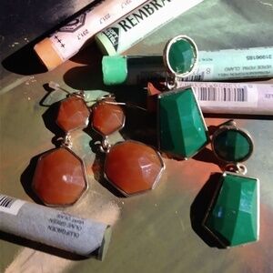 Similar but the coral/orange is a drop kind and the green are studs. Both have gold finish. Questions and offers always are welcome:)