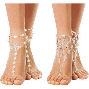 2 Pairs Barefoot Sandals- Beach Anklet Chain with Starfish for Women