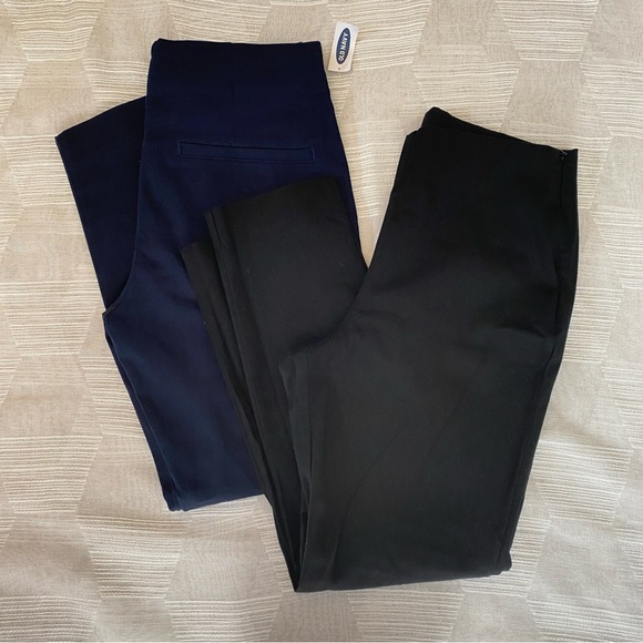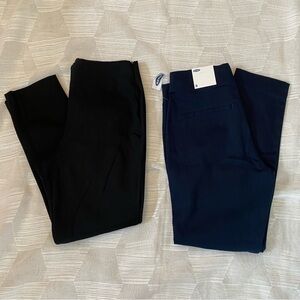 2 pairs of cropped / capris pants. 26.5” inseam, with 2” slit, high waisted. Navy blue is new with tags, black is in excellent used condition. Cute classic style, great for work / office attire.