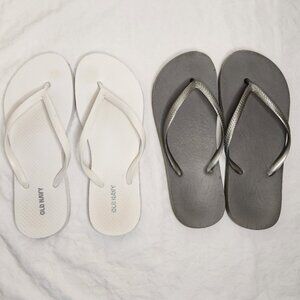 Two Pairs of Thong Style Rubber Flip-flops, Plain White from Old Navy and Solid Silver Grey, by Unknown (super comfy).