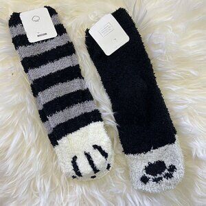 WOMEN EXTRA CUZY CAT SOCKS BLACK AND WHITE ANIMAL CAT SOCKS 2 PAIRS NEW