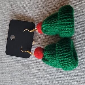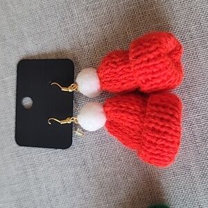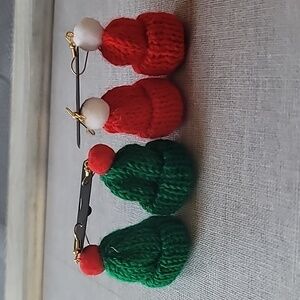 2 Pairs, 1 red and 1 green, Handmade Winter Snow Hat Earrings