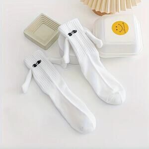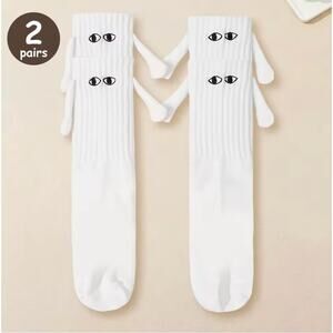 2 Pairs Magnetic Holding Hands Socks Funny Gift Unisex White NEW
