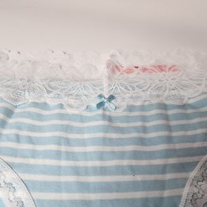 2 pairs of Womens 3x Splendies panties, NWT. Pink pair with vibrant red lace (Wilshire & Montana Intimates brand). Blue striped pair with delicate white lace (Splendies brand)