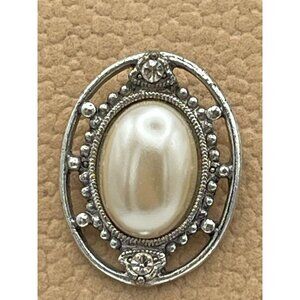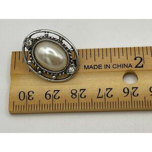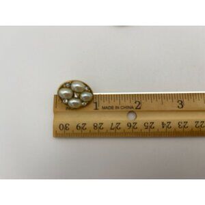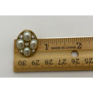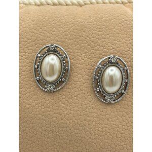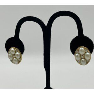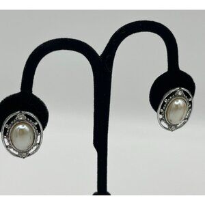 2 Pairs Pierced Earrings Gold Silver Tones Faux Pearls Clear Rhinestones