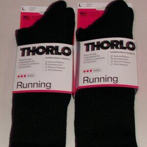 2 Pairs Thorlo Maximum Cushion Running Unisex Crew Socks Women's Large - Black