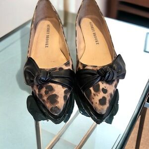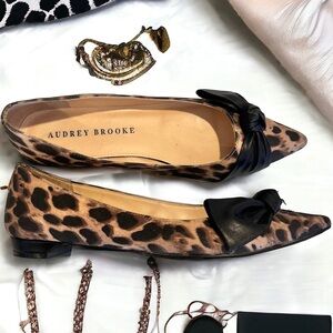 2 vintage pairs of Audrey Brooke leopard print flats. Gorgeous and sexy! Great Vintage shape. Omg I love bows on shoes!! One shoe is peeling inside but cannot see from the outside and the comfy fit is still there.