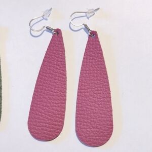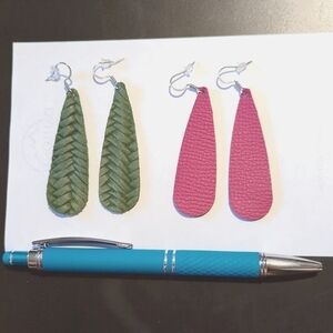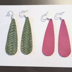 2 Pairs of Dangle Earrings, Green & Pink, Womens Trendy Vegan Leather