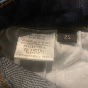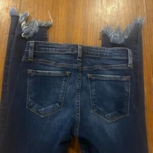 2 Pairs of Flying Monkey jeans by Buckle - Sz 25. Bundle deal for 2 pairs of excellent preowned condition. One pair of dark denim with jagged distressed hem. Light pair is distressed with fringed bottoms. Smoke free home. Will sale separately