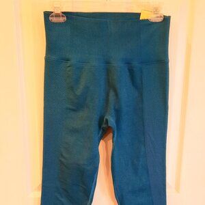 Brand new nice, thick leggings in fun colors. One is a cool 2 textured beautiful peacock blue - the other is a soft dusty peach (hanging pictures are more the correct color) with side pocket detail.
