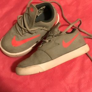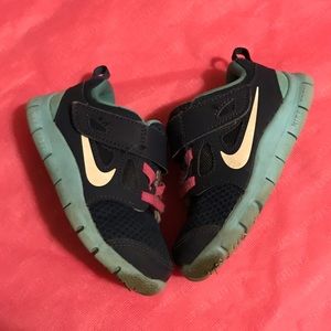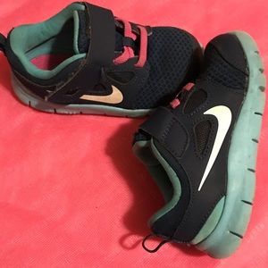 Selling 2 pairs of NIKE sneakers in size US TODDLER 7, UK 6.5. clear signs of wear and some dirt on each shoe. *The gray colored ones w/ coral colored 'check mark' are in a little better condition than the blue with some signs of dirt near the bottom. *The blue pair w/ pink 'check mark' shows more signs of wear than gray and the threads are coming out where the Velcro is. It has faux pink laces. NIKE FREE 5 edition. *** $15.00 for both