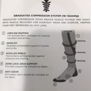 2 Pairs of Tommie Copper Compression Crew Socks Charcoal Size Small New