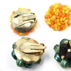 2 Pairs of Vintage Cluster Clip On Earrings - Marked Hong Kong - 1" - Hey Viv
