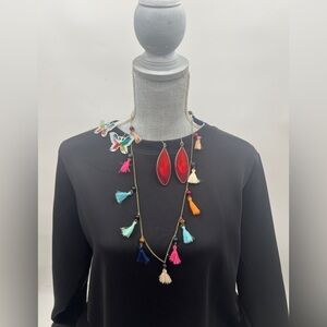 2 Pairs of string earrings and Tassel with semi precious beads necklace