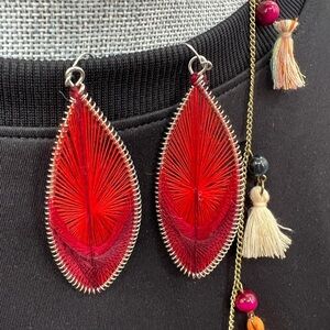 Red teardrop string earrings. Measures nearly 3"