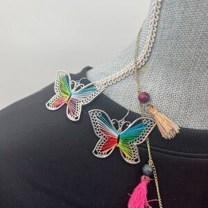 Rainbow colors Butterfly string earrings Width from top of wings 2" and length 1.5"