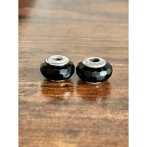 2 Authentic Pandora Black Fascinating Murano Glass Charms. No Pandora Pouch or Box.