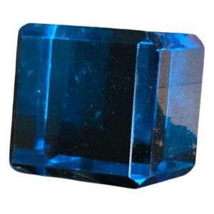 This Millefiori glass paperweight showcases intricate floral patterns, complemented by a striking rectangular blue crystal. Ideal for decorative or functional use.