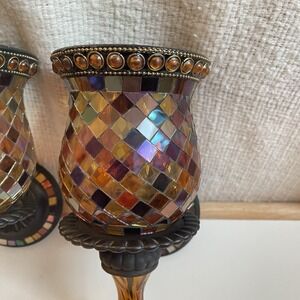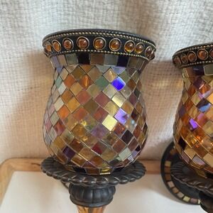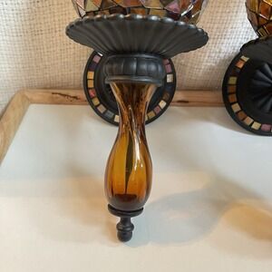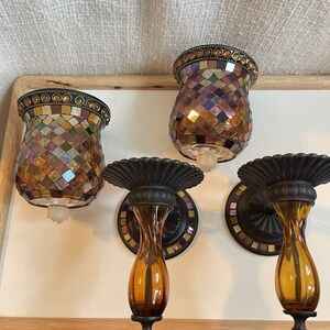 2 Party Lite Mosaic Glass Peglite And Votive Wall Sconce Global Fusion Set
