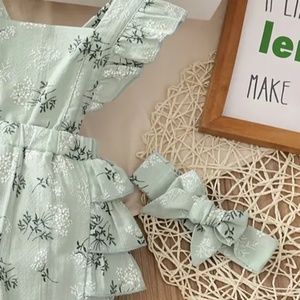 2 Pc Baby Girls Ruffle Sleeveless Jumpsuit & Headband W/Ditsy Floral Print 3-6mo