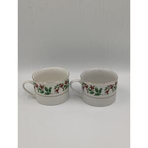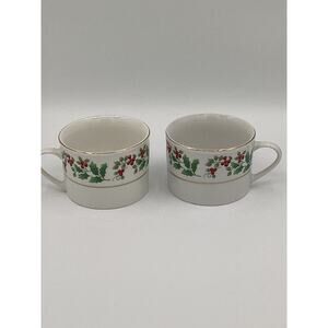 2 Pc Gibson China Everyday Christmas CHARM Coffee Cups/Mugs Holly Berry 3" Tall