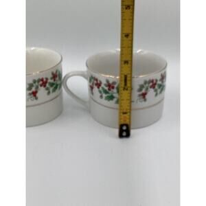 The cups feature a glossy finish, and the printed backstamp showcases their production style. Handwash is recommended for these Christmas China cups. With a festive theme of holly, these cups are a must-have for any Christmas lover, and they'll make a great addition to your decorative cookware, dinnerware, and serveware collection.