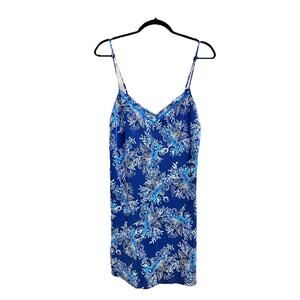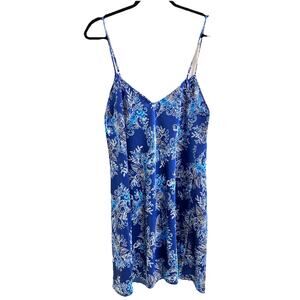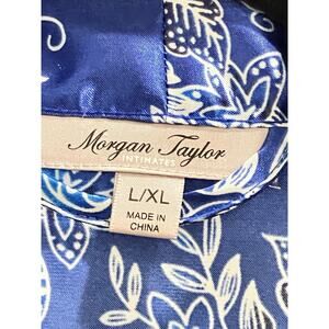 2 Pc Morgan Taylor Intimates SILKY Robe & Nightgown Size L/XL BLUE FLORAL