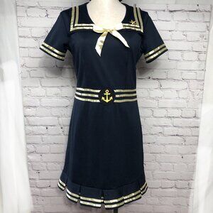 2 Pc Sailor 50’s Rockabilly Pin Up Style W/Hat Navy Blue with Gold Trim Dress L