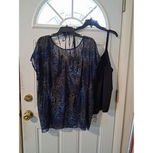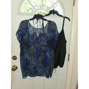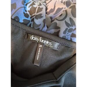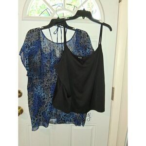 2 Pc Tank Top w/Sheer Top Daisy Fuentes 2X Black & Blue Floral