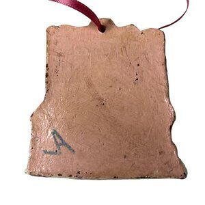 These vintage, handmade ceramic ornaments depict a quaint Santa and snow-capped house, each measuring 3x2 inches. A charming nod to yesteryears that adds a nostalgic touch to your holiday decor.