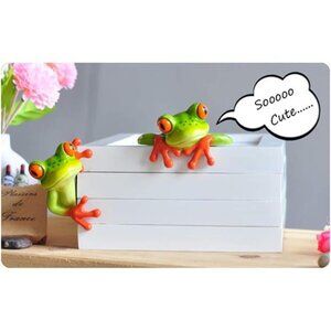 Description: With nature carving, the red eye, and the facial expressions details are lively. Adorable and Funny, add a fun to your workspace. A Fun Addition The green frog made of high quality resin, eco-friendly and non-toxic, Not only a wonderful Computer Decorations, also a funny creative decor for Desk & TV Screen & Car Mirror Note Handmade, it's normal for this type of goods to be with some uneven colors or rough surfaces.