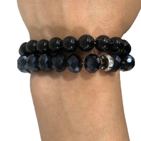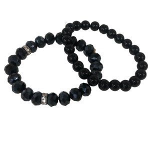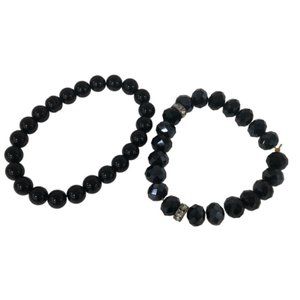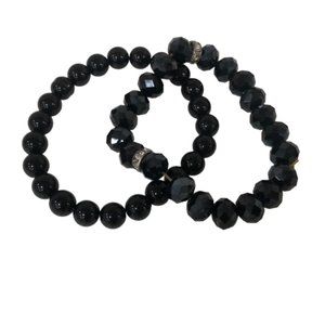 2 Pcs Set Stretchy Bead Bracelets For Women Black