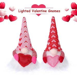 2 Pcs Valentine Gnomes with Lights, Handmade Swedish Tomtes Elf Valentine's Day