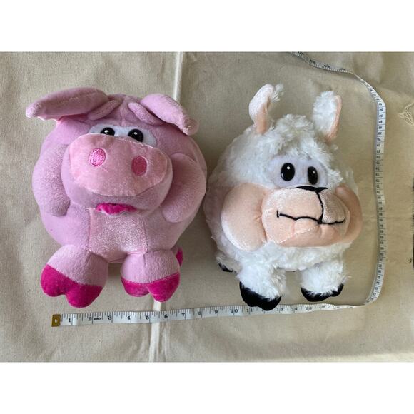 2 Peek a Boo plush stuffed White Puff Body Baby Lamb and Pig Pink Plush Pig Stuffed