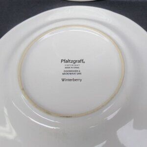 This listing is for two (2) really nice Winter Berry Winterberry 8 inch diameter salad plates made by Pfaltzgraff China. Both plates are in very good condition with no chips, cracks or scratches. The Winterberry design and green trim are all very good. They are signed on the back: PFALTZGRAFF - COPYRIGHT - MADE IN CHINA - DISHWASHER AND MICROWAVE SAFE - WINTER BERRY. Be sure to search our other Pfaltzgraff items, including more Winterberry available.