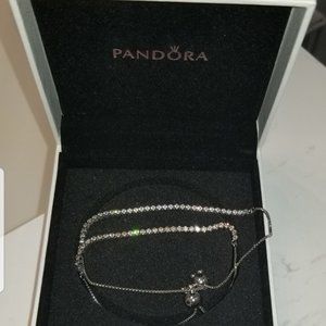 100% Authentic Pandora tennis bracelets (set) with sliding closure in sterling silver.