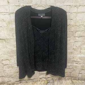 2 Piece Alex Evenings Black Sparkle Open Front Jacket Tank Top Party Holiday