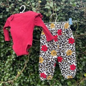 2 Piece Baby Girl Onsie/Pant Set Flutter Sleeves & Elastic Waist