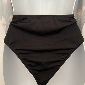 2 Piece Black Ruffle Layered  Floral Bathing Suit...Beach...adjustable shoulder straps...top with coral peach floral design...bottom high waist & high hip...see photos for details...051622