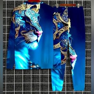This 2 Piece: Blue & Turquoise 3D Leopard Print, Long Sleeve Crew Neck Sweater w/Matching Drawstring Sweatpants is in Exceptional Used Condition (EUC): Previously lovingly cared for; but this is a preloved (used) item, some normal and minimal wear is expected. Review pics as they’re part of the description. Sold as is, no refunds. All auction bids/wins are final, no cancellations.