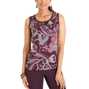 2 Piece Chico's Set Purple Paisley Cardigan Long Sleeve w Sleeveless Top 0 Small