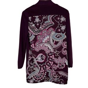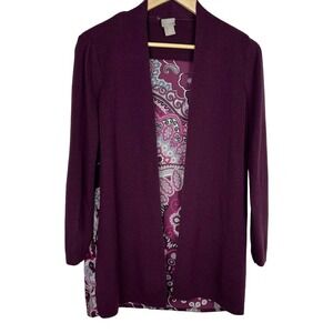 2 Piece Chico's Set Purple Open Knit Cardigan Long Sleeve Contrast Paisley w Sleeveless Top Size 0 Small