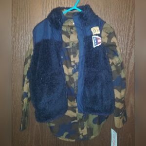 Boys Cat and Jack button down shirt w/ Dkny vest matching combo, vest faux fur Both Brandnew