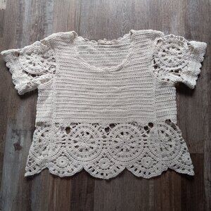 Solitaire 2 piece crochet top and flare bottoms. Size Med..
