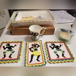 2 Piece Clay Art-Montego Chip and Dip Set. Perfect for the "Jam'in" friends and family gathering. Size approx..11" x 14". No chips or cracks. In orginal box. Excellent condition. Matching Trivet and Mug listed separately.